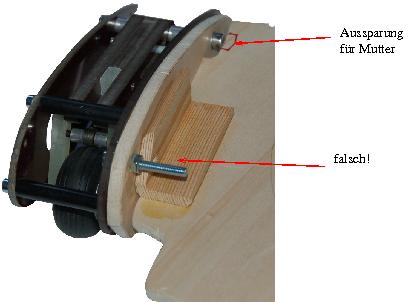 Airwolf 600![]() Gelungene Scale-Modelle sind die große Attraktion bei Flugvorführungen. Mit solchen Modellen lassen sich auch Zuschauer begeistern, die sich eigentlich nur aus Solidarität zum helibegeisterten Partner auf den Flugplatz verirren. Natürlich gibt es heute viele Hubschrauber, die direkt als Scale-Fertigmodell oder -Bausatz vertrieben werden. Allerdings existieren für die meisten Trainermodelle auch Rümpfe, um sie später in ein Scale oder Semi-Scale-Modell umzurüsten. Eine Möglichkeit soll hier vorgestellt werden: Der Airwolf 600, der als PET-Rumpf von der Firma Causemann vertrieben wird (Causemann und www.helituningteile.de) und für viele Modelle der 600er-Größe geeignet sein soll (z.B. Logo 10, T-Rex 600). Auf dieser Seite soll der Umbau für einen T-Rex 600 beschrieben werden. ![]() Die Größe des Paketes lässt erahnen, dass die neue Haube aus großen Einzelteilen besteht. Der Lieferumfang besteht aus 4 großen und 6 kleinen PET-Rumpfteilen. Zusätzlich liegen Schablonen, eine Exlosionszeichnung für den Heckaufbau und eine Kurzanleitung bei. ![]() ![]() Die Kurzanleitung mag für geübte Bastler ausreichend sein, Einsteiger können auf der Webseite der Firma Causemann ausführlichere Anleitungen finden. Zu einem richtigen Airwolf gehört auch ein ordentliches Einziehfahrwerk. Dieses muss gesondert hinzugekauft werden und hat das richtige Format, um mit dem Rumpf kombiniert zu werden. ![]() Das Fahrwerk ist erstaunlich robust gebaut, die Radaufhängung ist sogar gefedert, so dass auch bei einer zügigen Landung das richtige Scale-Gefühl aufkommen sollte. Ein Servo für das Ein-/Ausfahren des Fahrwerks benötigt man noch zusätzlich, ebenso muss der Sender noch einen Kanal für die Ansteuerung dieses Servos haben. Am besten sieht es natürlich aus, wenn das Fahrwerk langsam ein- und ausfährt. In diesem Fall benötigt man am Sender einen freien Proportionalgeber, der eine stufenlose Ansteuerung ermöglicht. Zuschnitt einer HolzplatteDamit der Rumpf mit ausreichender Stabilität am Heli befestigt werden kann, kann man als ersten Schritt mit dem Zuschnitt einer Holzplatte beginnen. Dies hat auch den Vorteil, dass man später beim Zusammenbau des Rumpfes früh prüfen kann, ob die Rumpfhälften zueinander passen. Die Holzplatte ist nicht Bestandteil des Airwolf-Rumpfbausatzes. Eine Platte mit etwa 6mm Dicke sollte genügend Stabilität bieten. Der Bausatz enthält eine Papierschablone. Diese kann man am besten ausschneiden und auf die Holzplatte legen, eventuell mit kleinen Nadeln fixieren. ![]() Mit einem dünnen Bleistift kann man die Schablone nun nachzeichnen und das Holz anschließend entsprechend aussägen. Zur Gewichtseinsparung sollte man nicht benötigte Teile der Holzplatte aussägen. Die Schablone enthält Vorschläge: ![]() Die Vorschläge mögen bei anderen Modellen der 600er-Klasse geeignet sein, für den T-Rex 600 erscheinen sie aber etwas ungeeignet, denn die Holzplatte soll später am Chassi unterhalb des Helis befestigt werden. Man kann die Platte unter den T-Rex legen und die Stellen einzeichnen, die zwecks Befestigung nicht ausgesägt werden sollten. ![]() Wenn man die Außenkanten mit Schmiergelpapier glättet, lässt sich der Rumpf später besser anlegen und die Hände werden es danken... Zusammenbau des RumpfesZunächst schneidet man von nicht zu benutzenden Bereichen (Restmaterial) PET-Streifen von etwa 2cm Breite ab. Die Gesamtlänge dieser Streifen sollte etwa 1m sein. Auf einer Seite raut man die Oberfläche an. Anschließend schleift man die Innenkante eines der vorderen Rumpfteile an, damit der Klebstoff anschließend besser haftet: ![]() Auf diese Innenkante klebt man nun die zuvor ausgeschnittenen PET-Streifen. Die andere Rumpfseite sollte nun passend aufgeschoben werden können. Damit man den Rumpf später problemlos montieren kann, ist es praktisch, wenn man eine Seite des Rumpfes auf die andere mit kleinen Schrauben befestigen kann. Mit einem kleinen Nagelbohrer kann man geeignete Löcher in den PET-Streifen und den PET-Rumpf bohren. Hier ist sehr genau zu arbeiten, damit die beiden Rumpfhälften passgenau fixiert werden können! Alternativ kann man die beiden PET-Hälften auch durch die Kraft von kleinen Magneten befestigen. In jedem Fall macht es Sinn (ähnlich wie beim Einsetzen von Ikea-Schrankteilen...) je zwei gegenüberliegende Holzklötzchen mit einer Bohrung auf den beiden Rumpfhälften zu befestigen und in eines eine kleine Stange klebend einzusetzen. So lassen sich die beiden Rumpfhälften anschließend bei der Montage hineinanderstecken, ohne dass sie sich verschieben können. ![]() Im nächsten Schritt bietet es sich schon an, die Innenbereiche des Rumpfes so zuzuschneiden, dass das Innenleben des Helis Platz findet. Je weniger Kunststoff weggeschnitten wird, desto stabiler bleibt der Rumpf und so einfacher gestaltet sich die spätere Befestigung von möglichen weiteren Querverbindungen. ![]() Auf der Cockpithaube wurde vom Hersteller schon eine Schnittlinie vorgezeichnet. ![]() Schneiden Sie zunächst mit einem Abstand von 1cm an der Schnittlinie entlang. Setzen Sie die Haube auf den zuvor zusammengesetzten Rumpfvorderteil und prüfen Sie, ob die eingezeichnete Schnittlinie tatsächlich passt, bevor Sie den finalen Zuschnitt der Cockpithaube durchführen. Als nächster Schritt soll die Heckrohrverkleidung zugeschnitten werden. Um die Verkleidung später besser an den Heli anpassen zu können, entfernen Sie das Höhen- und Seitenleitwerk und die Stabilisierungsstangen am T-Rex. ![]() Die PET-Heckverkleidung finden Sie auf einer größeren PET-Platte. Schneiden Sie die Heckhälften aus (siehe eingezeichnete Schnittlinie) und schneiden Sie auch die Heckdurchführung am Vorderrumpf aus, wenn Sie dies noch nicht durchgeführt haben. ![]() Halten Sie die Heckhälften aneinander und testen Sie, ob die Hälften ineinander fassen können. Jetzt sollte der Heckabschluss auf das Ende passen. In diesem Fall schneiden Sie auch 
