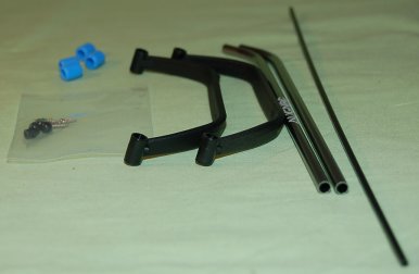 Übersicht BauanleitungDas LandegestellDie Befestigung der Landekufen ist ein sehr schnell durchgeführter Arbeitsschritt. Das Landegestell befindet sich in Tütchen HF2. Zusätzlich soll an diesem auch das Antennenröhrchen befestigt werden, welches sich in Beutel HT9 befindet. ![]() An beiden Kufen werden zunächst die Enden mit den schwarzen Abschlußsteckern verschlossen. Diese sollten am besten mit Kleber versehen werden, damit sie später nicht so schnell herausfallen können. ![]() Dann schieben wir die blauen Gummiringe auf und drücken sie bis an die Kufenbogen, dann schieben wir den ersten Kufenhalter hinterher. Der zweite Kufenhalter wird nun soweit aufgeschoben, bis er er dem Abstand entspricht, in dem er später unter das Chassi geschraubt werden kann. Zu guter Letzt werden dahinter wieder blaue Gummiringe aufgesteckt und der Antennenhalter durch die Durchführungen geschoben. Das Landegestellt ist nun fertig und kann unter das Chassi geschraubt werden. ![]() |